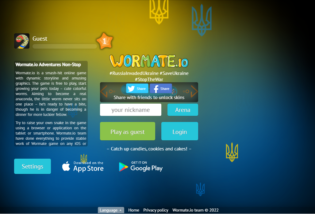 일명 지렁이 키우기 게임이라고도 불리우는 슬리더리오 wormate.io는 작은 먹이를 먹으며 몸집을 키워나가는 과정이 마치 Agar.io와도 비슷한 게임입니다.